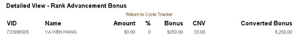 恭喜雅雯升金級,單次進階獎金250美金, 台幣8250元